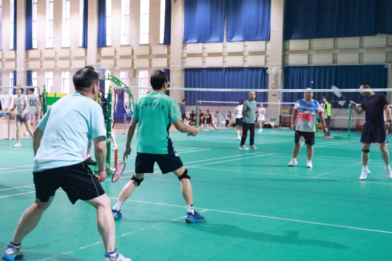 羽毛球交流赛同步进行,校友与教工选手们两两对垒,在挥拍、跳跃间尽显运动魅力。无论是技巧娴熟的吊球,还是力道十足的扣杀,都展现出选手们对运动的热爱与对比赛的专注。赛场上是对手,赛场下是朋友,大家在切磋技艺的同时,畅谈校园往事,共话母校发展,现场氛围热烈而温馨。